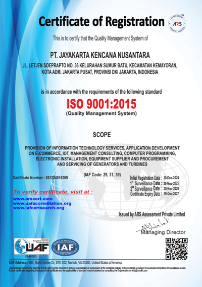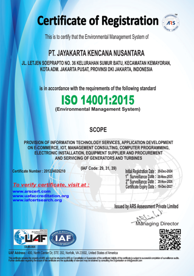 PT. Jayakarta Kencana Nusantara (Jayanara) was established in 2023, specializing in automated gas cleaning systems (H2S Scrubber), General Mechanical & Electrical, as well as Information & Communication Technology (Internet of Things, control systems, desktop programming, and web applications).